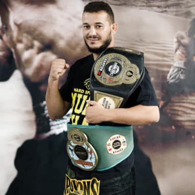 Guerrier dans l’âme, je me sent prêt à défier qui que ce soit. Je participe alors et remporte le championnat du monde d’Absolut Fight, discipline qui s’apparenterait aujourd’hui au MMA. Persévérant, discipliné et technique, j’ai gardé cette dynamique et terminé ma carrière en étant sacré deux fois Champion du monde en Kickboxing et deux fois Champion du monde en Muay Thaï.